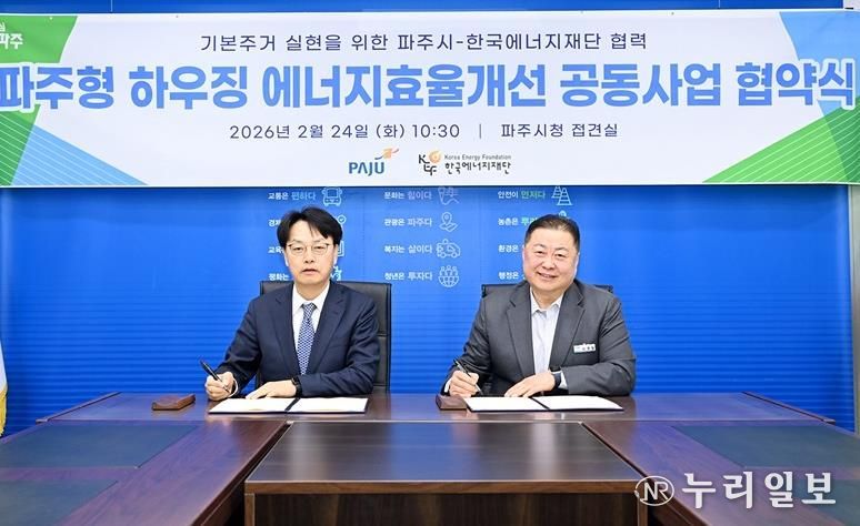 (누리일보) 파주시는 지난 24일 한국에너지재단과 ‘기본주거 실현을 위한 파주형 하우징 에너지효율개선 공동사업’업무협약을 체결했다.