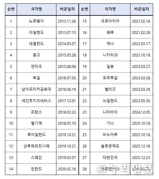 (누리일보) 해양수산부는 아르헨티나가 2월 24일 28번째로 ‘케이프타운 협정’에 비준서를 기탁함으로써 협정 발효 요건이 충족됐고, 내년도 2월 24일부터 동 협정이 발효될 예정이라고 밝혔다.