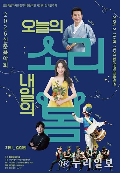 (누리일보) 강원특별자치도립국악관현악단이 2026년 첫 정기공연으로 신춘연주회 〈오늘의 소리, 내일의 봄〉을 선보인다.