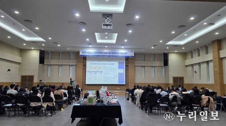 (누리일보) 시흥시는 지난 3월 6일 시흥비즈니스센터 컨벤션홀에서 시청 각 부서 및 동 행정복지센터의 사회적경제기업 공공구매 사업 담당자를 대상으로 ‘2026년 사회적경제기업 공공기관 우선구매 상담회 및 직원교육’을 실시했다.