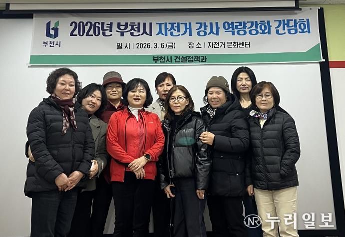 (누리일보) 부천시는 지난 6일 자전거문화센터에서 자전거 안전문화 정착과 생활 속 자전거 이용 활성화를 위해 ‘자전거 교육 강사 역량 강화를 위한 간담회’를 열었다.