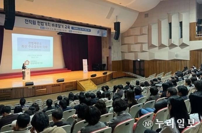 (누리일보) 안양시는 9일 오후 2시 소속 공무원들을 대상으로 예승연 헌법재판소 헌법재판연구원 교수를 초빙해 ‘헌법가치 바로 알기’ 교육을 실시했다.