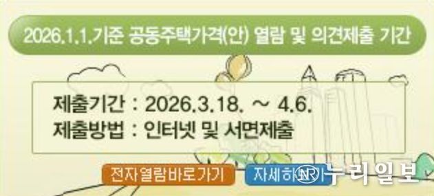 (누리일보) 이천시는 개별주택의 특성과 표준주택의 특성을 비교해 주택가격 비준표를 토대로 산정된 2026년 1월 1일 기준 관내 단독 및 다가구 주택 등 18,155호에 대한 개별주택가격에 대하여 열람 및 의견을 청취한다고 밝혔다.