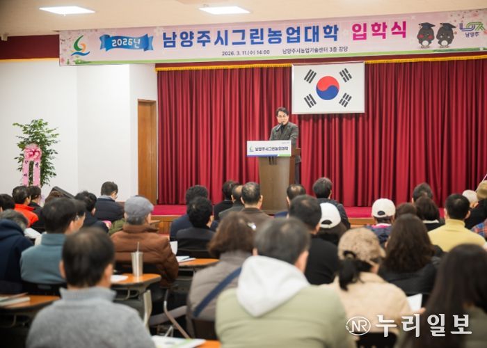 (누리일보) 남양주시의회는 11일 농업기술센터 3층 대강당에서 열린 2026년 남양주시그린농업대학 입학식에 참석해 신입생들에게 축하의 인사를 전했다.