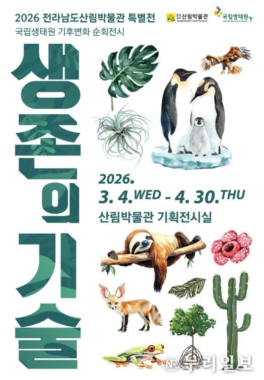 (누리일보) 전라남도 완도수목원은 4월 30일까지 산림박물관 기획전시실에서 기후변화 특별전 ‘생존의 기술’을 개최한다.