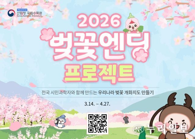 (누리일보) 산림청 국립수목원은 2026년 봄 벚나무 개화 시기에 맞춰 시민과학 참여 프로그램인 '벚꽃엔딩 프로젝트'를 운영한다.