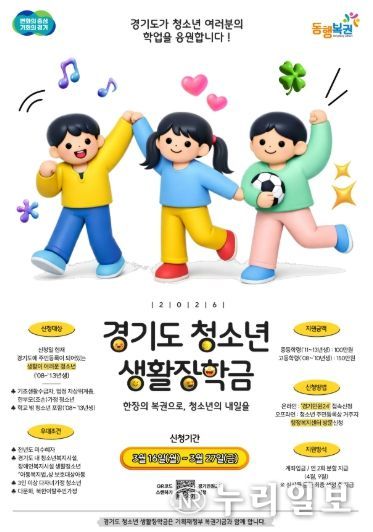 (누리일보) 남양주시는 오는 16일부터 경제적으로 어려운 청소년의 학업 지원을 위해 ‘2026년 경기도 청소년 생활장학금’ 대상자를 모집한다고 12일 밝혔다.