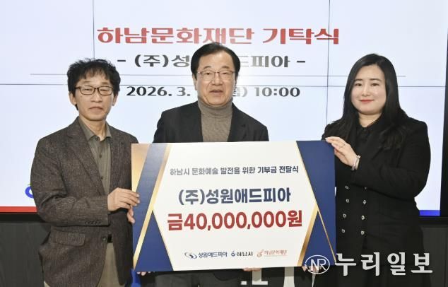 (누리일보) 하남문화재단은 ㈜성원애드피아가 하남시 문화예술 발전을 위해 기부금 4,000만원을 기탁했다고 밝혔다.