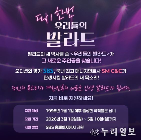 (누리일보) 시즌2로 돌아오는 SBS ‘우리들의 발라드’가 발라드 신화를 이을 새로운 목소리를 찾는다.