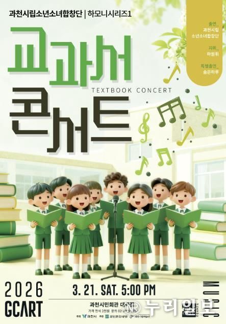 (누리일보) 과천시립소년소녀합창단의 ‘하모니시리즈1 '교과서 콘서트'’가 오는 21일 오후 5시, 과천시민회관 대극장에서 열린다.