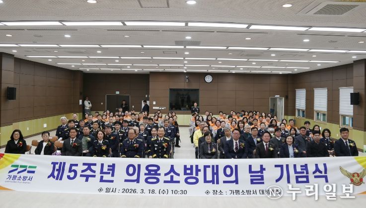 (누리일보) 가평소방서는 18일 3층 대강당에서 지역사회 안전을 위해 헌신해 온 의용소방대의 노고를 기리고 사기를 진작하기 위한 ‘제5주년 의용소방대의 날 기념행사’를 개최했다고 밝혔다.