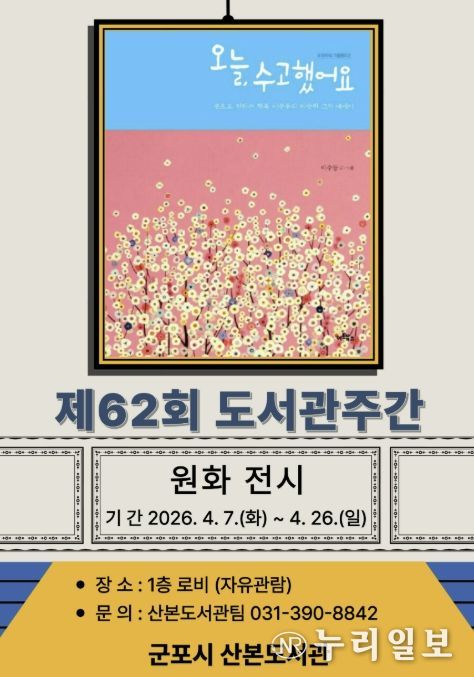 (누리일보) 군포시 산본도서관은 도서관주간을 맞아 시민들의 독서문화 확산과 책을 통한 공감의 시간을 마련하기 위해 작가와의 만남, 북토크, 원화전시 등 다양한 프로그램을 운영한다.