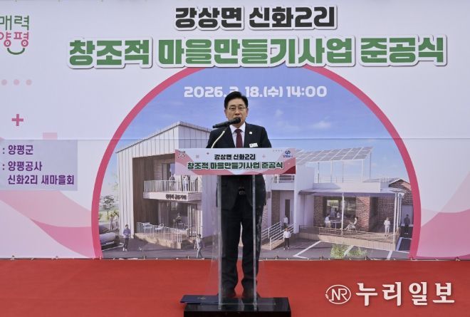 (누리일보) 양평군은 지난 18일 창조적 마을만들기 사업으로 조성한 ‘신화2리 마을회관’ 준공식을 개최했다. 이날 행사에는 전진선 양평군수를 비롯해 지민희 양평군의회 부의장, 송진욱 군의원, 마을 주민 등 100여 명이 참석해 준공을 축하했다.