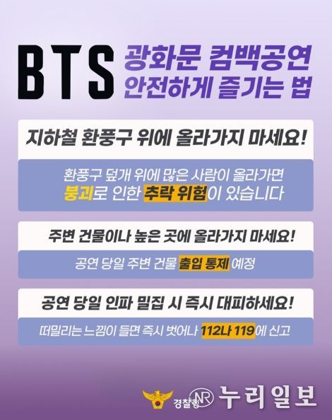 (누리일보) BTS 광화문 컴백공연 안전하게 즐기는 법