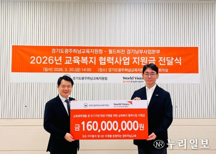 (누리일보) 경기도광주하남교육지원청은 3월 20일 광주하남교육지원청에서 월드비전 경기남부지역본부(본부장 최성호)와 함께 교육취약계층 학생 지원을 위한 지원금 전달식을 개최했다.