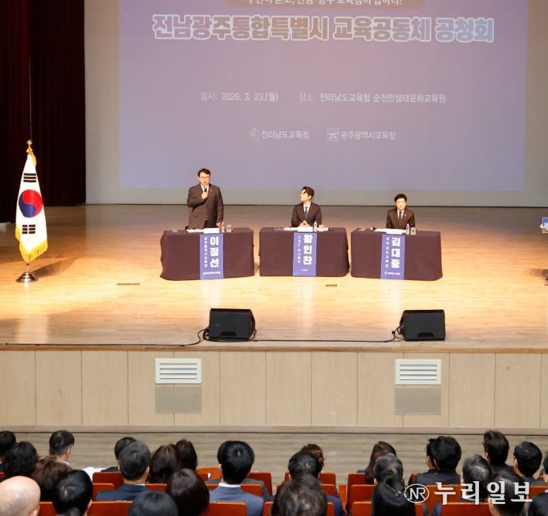 (누리일보) 광주시교육청 ‘광주전남교육행정통합실무준비단’과 전남도교육청 ‘전남광주교육행정통합추진단’은 23일 순천만생태문화교육원에서 광주·전남 교육공동체 400여 명이 참석한 가운데 ‘전남광주통합특별시 교육공동체 공청회’를 개최했다.