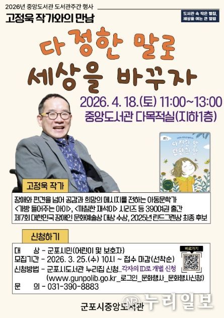 행사 관련 사항은 군포시도서관 누리집 공지사항에서 확인할 수 있으며, 참여 신청은 3월 25일부터 선착순으로 접수한다.