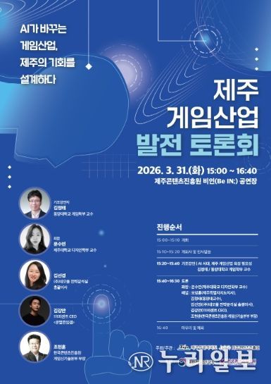 (누리일보) 제주특별자치도가 인공지능(AI) 시대 게임산업을 새로운 성장동력으로 육성하기 위한 토론회를 오는 31일(화) 오후 3시 제주콘텐츠진흥원 비인(BeIN;)공연장에서 개최한다.