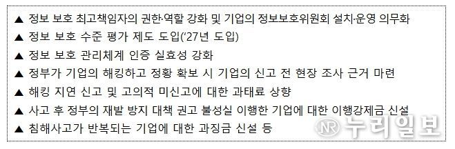 정보통신망법 개정안은 사이버 침해사고 예방부터 대응까지 전 범위를 강화하는 것을 골자로 한다. 기업의 정보 보호 역량을 높이고 관련 정보 보호 인증 체계를 강화하여 침해사고 발생을 더 효과적으로 예방할 수 있게 되며, 사고 발생이 의심되면 정부의 조사가 가능해져 사이버보안 침해사고에 더욱 빠르게 대응할 수 있게 된다. 무엇보다 침해사고로 인한 국민의 피해를 방지하기 위해서 기업의 사회적, 법적 책임을 강화하는 내용을 담고 있다.