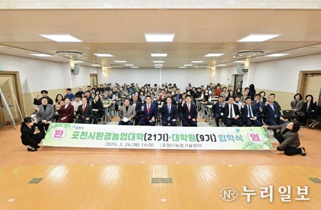 (누리일보) 포천시는 지난 24일 포천시농업기술센터 대강당에서 신입생과 내빈 등 100여 명이 참석한 가운데 ‘2026학년도 포천시환경농업대학(22기) 및 대학원(9기) 입학식’을 개최했다.