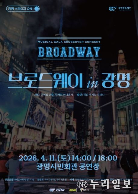 (누리일보) (재)광명문화재단은 오는 4월 11일 오후 2시와 6시, 광명시민회관에서 크로스오버 콘서트 '브로드웨이 IN 광명'을 개최한다.