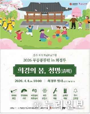 (누리일보) 광주문화재단은 오는 4월 4일 오후 2시부터 5시까지 희경루 일대에서 절기·세시 체험프로그램 '2026년 무등풍류뎐 in 희경루–2회차 ‘희경의 봄, 청명(淸明)’'을 개최한다. 이번 행사는 봄의 절기 ‘청명’을 맞아 아이와 보호자가 함께 전통문화를 체험할 수 있도록 마련됐다.
