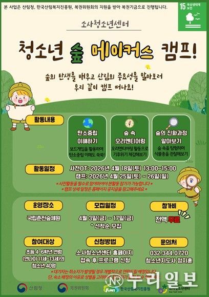 김미희 소사청소년센터장은 “숲 기반 활동을 통해 산림의 가치를 인식하고 생태감수성을 함양하기 바란다. 나아가 일상 속에서 친환경 활동을 자발적으로 주도하는 청소년으로 성장하길 기대한다”고 전했다.