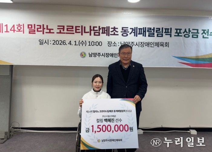 (누리일보) 남양주시는 지난 1일 남양주시장애인체육회가 제14회 밀라노-코르티나담페초 동계패럴림픽 휠체어컬링 믹스더블 종목 은메달리스트 백혜진 선수에게 포상금을 전달하고 성과를 격려했다고 2일 밝혔다.