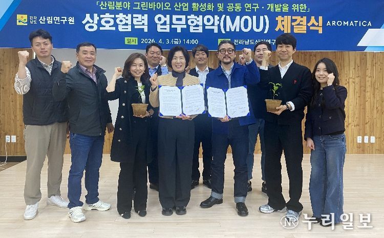 (누리일보) 전라남도산림연구원은 3일 ㈜아로마티카와 업무협약을 하고, 전남의 비교우위 난대 산림자원에서 추출한 에센셜오일을 활용해 케이(K)-뷰티 화장품 개발과 산업화를 본격 추진한다고 밝혔다.