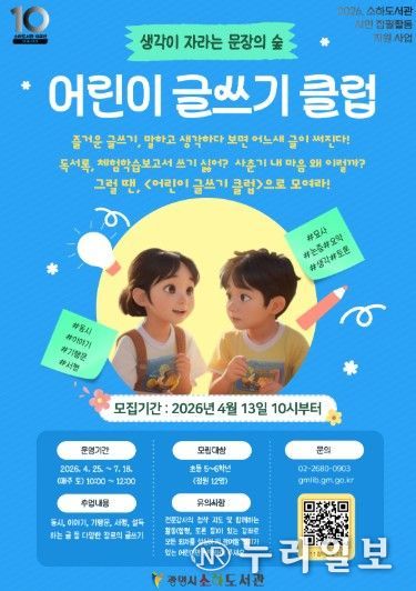 (누리일보) 광명시 소하도서관은 어린이 글쓰기 클럽 ‘생각이 자라는 문장의 숲’ 수강생을 오는 13일부터 모집한다.
