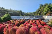 (누리일보) 주변 섬들의 이름과 지명을 알 수 있는 전경 안내판이 설치된 전망대에 올라서면 시원한 가을 바닷바람을 맞으며 서해안을 볼 수 있고, 다양한 가을꽃이 만개한 곳! 바로 경기도 안산 대부도 인근에 소재한 바다향기수목원이다. 추석연휴 기간을 맞아 자연의 싱그러운 녹음을 전해주고 있는 바다향기수목원에는 수목원 내 식재된 다양한 가을꽃과 함께 890개 국화 화분이 일제히 개화를 하고, 목화 1,200본과 붉게 단풍이 든 댑싸리 500개, 다양한 색상의 웨이브페츄니아와 로즈마리 1,100본이 가을의 색과 향기를 전하고 있다. 또한 ‘바다향기수목원 사용설명서’, ‘자연 속 숨은 보물찾기’, ‘속속들이 소나무’, ‘흙은 재미있는 우리 친구’ 등 다양한 숲 해설 프로그램이 가을철 수목원을 찾는 가족 단위 방문객들을 맞이하고 있으며, 연중 토요일과 일요일에 신청을 받아 운영되고 있는 ‘향나무 목걸이 만들기’, ‘불어라 피리’ 등의 체험프로그램 또한 관람객을 위해 준비되고 있다. 더욱이 수목원 내 염생식물원에 있는 ‘바다향기전시관’을 지역사회와 예술가를 위한 기획전시실로 개방해 10월 3일부터 12일까지 기획전시 및