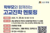 (누리일보) 안성시는 오는 11월 29일 오전 10시, 안성맞춤 아트홀에서 관내 중학생과 학부모를 대상으로 ‘학부모와 함께하는 고교진학 멘토링’을 실시한다고 밝혔다. 이번 멘토링은 ‘진로탐색, 함께 걸어요! 학부모와 자녀가 함께 만드는 고교진학 로드맵’ 이라는 슬로건 아래, 학생들이 자기주도적으로 진로를 설계하고, 학부모가 효과적으로 자녀의 진로를 선택할 수 있도록 돕는 데 중점을 두고 있다. 특히, 가정과 지역사회가 함께하는 진로교육 협력체계를 구축함으로써, 지역 교육공동체 역량 강화와 진로교육 환경 개선을 동시에 도모할 계획이다. 본 프로그램은 안성시 주소지를 두고 있거나 관내 중학교 재학 중인 중학생과 학부모 총 80명을 대상으로 하며, 신청은 10월 1일(수)부터 11월 7일(금)까지 QR코드를 통해 선착순 접수가 가능하다. 행사는 ▲진로 특강 및 검사 해석(80분) ▲커리어맵 실습(30분) ▲그룹별 멘토링(60분) 등이 진행되며, 전문 강사와 멘토가 참여해 실질적이고 체계적인 진로·진학 설계를 돕는다. 그룹 멘토링은 참가 학생 40명을 8명씩 5개 그룹으로 나누어 맞춤형 지도가 이루어질 예정이다. &n