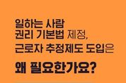 (누리일보) 일하는 사람 권리 기본법 제정, 근로자 추정제도 도입은 왜 필요한가요? 제대로 알려드립니다. Q1. 일하는 사람 권리 기본법 제정, 근로자 추정제도 도입은 왜 하는건가요? AI 혁신, 플랫폼 경제 급성장 등 대전환의 시대에 새롭게 발생하는 모든 형태의 일하는 사람을 보호하기 위함입니다. Q2. 그럼 플랫폼종사자, 프리랜서 등은 모두 근로기준법상 근로자가 되는 건가요? 근로기준법상 근로자의 개념이 바뀌거나 확대되는 것은 아닙니다. Q3. 근로기준법상 근로자 개념이 확대되는 게 아니라면, 플랫폼종사자, 프리랜서 등은 보호되지 않는 것 아닌가요? 플랫폼종사자, 프리랜서도 일하는 사람 권리 기본법에 따라 보호될 수 있습니다. 또한, 근로자 추정제도를 통해 근로자임에도 입증하지 못해 근로자로 인정받지 못했던 사람들을 확실히 보호하면서, 가짜 3.3 감독을 통해 현장의 잘못된 관행을 바로 잡아나가겠습니다. Q4. 일하는 사람 권리 기본법은 선언적 규정이라고 하던데, 그럼 실효성이 없는 것 아닌가요? 기본법은 일하는 사람의 인권, 경제적 권리, 사회보장 권리 등을 규정하고 있으며, 경제적 권리 분쟁