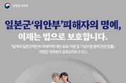 (누리일보) 일본군 '위안부' 피해자의 명예, 이제는 법으로 보호합니다. 「일제하 일본군 위안부 피해자에 대한 보호·지원 및 기념사업 등에 관한 법률」 개정안 국무회의 공포(2026.3.10.) 피해자의 명예를 훼손하는 행위는 금지되고, 피해사실에 대한 허위 사실을 유포하는 경우 처벌받게 됩니다. - 처벌 수위 : 5년 이하의 징역 또는 5000만 원 이하의 벌금 - 적용 범위 : SNS, 온라인커뮤니티, 출판물, 공연 등 모든 온·오프라인 채널 포함 - 적용 시기 · 명예훼손 금지: 공포 후 즉시 · 허위사실 유포 금지: 공포 후 3개월(6.11)부터 예술·학문·연구·보도 등을 목적으로 하는 경우에는 처벌 대상에서 제외됩니다. 피해자의 명예와 존엄을 지키겠습니다. 성평등가족부는 일본군 '위안부' 피해자의 명예와 존엄을 보호하고 올바른 역사 인식 확산을 위해 관련 정책을 지속적으로 추진하겠습니다.