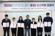 (누리일보) 제주테크노파크(원장 지영흔, 제주TP)가 1일 제주벤처마루 9층 회의실에서 6명의 신규직원에게 임명장을 수여했다. 이번 신규직원은 지난 6월 실시된 제주특별자치도 공공기관 통합공채에 따른 채용이다. 제주TP는 통합공채를 통해 기업육성과 바이오, IT 분야, 우주항공, 경영지원 등 제주 주축산업과 미래 신산업 육성에 필요한 지역인재 10명을 모집했다. 그 결과 기업육성을 위한 사업기획을 비롯해 용암해수 활용과 생산장비 운영, 빅데이터센터와 관련한 미래신산업, 경영지원 분야에서 6명이 채용됐다. 제주TP는 매년 제주특별자치도에서 실시하는 공공기관 통합채용에 참여하며 청년일자리 창출에 기여하고 있다. 현재 제주TP는 정책기획단과 기업지원단, 청정바이오사업본부 산하 바이오센터와 생물종다양성연구소, 용암해수센터, 미래융합사업본부 산하 미래산업센터와 에너지센터에 정규직 146명 포함 188명의 전문직이 근무하고 있다. 한편 제주TP는 중소벤처기업부와 제주특별자치도의 지원‧감독을 바탕으로 산학연관 협력네트워크를 구축하고, 지역 특성에 맞는 산업발전 전략과 정책의 수립, 연구개발과 생산 지원, 다양