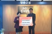 (누리일보) 양주시가 31일 양주먹방(회장 이종현)로부터 연말을 맞아 이웃돕기 성금 200만 원을 기탁받았다. 이날 기탁식에는 이종현 회장을 비롯한 회원들이 참석해 나눔의 뜻을 전했다. ‘양주먹방’은 1만 1천여 명의 회원이 활동 중인 페이스북 기반 온라인 커뮤니티로, 정기적인 모임과 함께 지역 나눔 활동도 꾸준히 이어오고 있다. 이종현 회장은 “회원들이 온라인에서 나누는 따뜻한 정을 연말을 맞아 어려운 이웃들과 직접 나누고 싶었다”며 “회원들이 십시일반 마음을 모아 준비한 성금이 양주시 취약계층의 따뜻한 겨울나기에 작은 힘이 되길 바란다”고 말했다. 시 관계자는 “양주먹방 회원들이 자발적으로 뜻을 모아 매년 나눔을 실천해 주셔서 감사드린다”며 “전해주신 성금이 필요한 이웃들에게 따뜻한 위로와 힘이 될 수 있도록 하겠다”고 전했다. 기탁된 성금은 사회복지공동모금회를 통해 양주시 관내 저소득층 및 취약계층을 위한 다양한 복지 사업에 사용될 예정이다.
