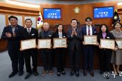 (누리일보) 오산시의회는 6일 본회의장에서 ‘오산시의회 의장 표창 시상식’을 열고 지역 발전과 주민 자치 활성화에 헌신한 위원 8명에게 의장 표창을 수여했다. 수상자는 ▲중앙동 최하늘 위원 ▲대원1동 전해자 위원 ▲대원2동 권옥선 위원▲남촌동 박순용 위원 ▲신장1동 정정숙 위원 ▲신장2동 이선자 위원 ▲세마동 남호석 위원 ▲초평동 이주왕 위원 등 모두 8명으로 주민과 행정을 잇는 가교로서 지역사회 발전에 기여한 공로를 인정받았다. 이상복 의장은 인사말을 통해 “지역 곳곳에서 시민들의 더 나은 삶을 위해 헌신해 오신 여러분이야말로 진정한 풀뿌리 민주주의의 주인공”이라고 강조했다. 이어 “그동안 현장에서 묵묵히 책임을 다해준 주민자치위원들의 노고에 깊이 감사하다”며 “앞으로도 변함없이 주민자치위원회가 걷는 길이 오산의 내일을 밝히는 힘이 되길 바란다”고 말했다. 이 의장은 “오산시의회는 주민의 참여와 자치가 더욱 활짝 꽃필 수 있도록 든든한 지원군이 될 것”이라고 덧붙였다.
