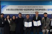(누리일보) 수원시청소년청년재단은 11일 성균관대학교 자연과학캠퍼스와 청소년ㆍ청년의 취‧창업 지원과 전인적 성장을 위한 업무협약(MOU)을 체결했다고 밝혔다. 이번 협약을 통해 양 기관은 △대학생 연계사업 활성화를 위한 지속적인 교류활동 추진 및 내실화 △청소년의 진로 탐색을 위한 멘토링 및 학과 탐방 기회 제공 △기타 상호 협력이 필요하다고 인정되는 분야에서의 협조 체계를 구축할 예정이다. 재단 관계자는 "이번 협약이 단순한 형식적 절차에 머무르지 않고 우리 청소년‧청년들에게 새로운 경험과 지속적인 성장의 기회를 제공하는 중요한 출발점이 되기를 희망한다"며, "협약의 성공적인 이행을 위해 상호 긴밀하게 협력해 나갈 것"이라고 밝혔다.