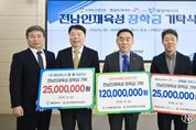 (누리일보) 전라남도는 30일 인재육성 장학금으로 (재)녹색에너지연구원이 1억 2천만 원, 전남도시가스(주)가 2천500만원, ㈜해양에너지가 2천500만 원을 전남인재평생교육진흥원에 기탁했다고 밝혔다. 이날 인재평생교육진흥원 배움마루에서 열린 기탁식에는 백경동 전남도 에너지정책과장, 황규철 녹색에너지연구원장, 구자성 전남도시가스 대표이사, 정회 해양에너지 대표이사, 범희승 전남인재평생교육진흥원장 등이 참석했다. 녹색에너지연구원은 태양광·풍력·수소 등 신재생에너지 분야의 원천기술과 및 실용화 기술 연구개발을 수행하며, 해상풍력 대규모 단지 조성, 차세대 전력망, 계통 안정화 및 에너지 디지털 전환 추진 등 전남도 에너지 정책을 뒷받침하는 핵심 전문기관으로 자리매김하고 있다. 특히 이번 장학금은 전남-경기 ‘지역상생나눔 태양광발전소’ 수익금 일부를 지역사회에 환원하는 것으로, 연구원은 2018년부터 올해까지 7억 3천500만 원의 장학금을 기탁하는 등 지역상생·사회공헌 활동에 앞장서고 있다. 전남도시가스는 순천·광양 등 6개 시군 19만여 세대에 도시가스를 안정적으로 공급하고 있으며, 천연가스 보급확대