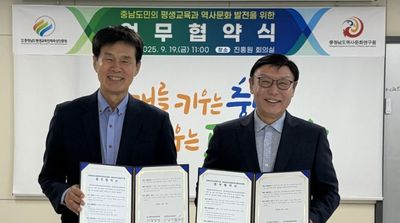 (누리일보) 충남역사문화연구원과 충남평생교육인재육성진흥원이 도민의 지역사 이해와 평생교육 활성화를 위해 업무협약(MOU)을 체결했다. 충남역사문화연구원은 2004년에 개원한 이래 충남의 역사 고증연구, 문화유산의 발굴과 보존, 박물관 운영을 주관해 온 기관이다. 충남평생교육인재육성진흥원은 교육과 장학사업을 통해 인재육성에 앞장서고 있다. 이번 협약을 통해 양 기관은 충남학 교육 콘텐츠의 성과와 품질을 높이고, 개발 콘텐츠의 확산에 상호 협력하기로 했다. 장기승 연구원장은 “연구원의 연구성과가 진흥원의 교육 콘텐츠로 연계되어 적극 활용되길 기대한다”고 밝히고, 황환택 진흥원장은 “역사문화 교육은 평생 학습의 기반이며, 도민의 일상속에서 충남의 가치를 체감하는 배움의 기회를 확대하겠다”고 강조했다.