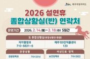 (누리일보) 제주특별자치도는 13일 진명기 행정부지사 주재로 ‘2026년 설연휴 종합대책 보고회’를 열고 ‘민생에 온기를, 안전에 안심을 더하는 설명절’을 주제로 분야별 세부 추진계획을 점검했다. 이날 보고회에는 정무부지사를 비롯해 안전건강실장, 특별자치행정국장, 행정시 부시장 등 상황반별 실국단장 20여 명을 포함한 130여명의 간부공무원이 참석했다. 제주도는 14일부터 18일까지 특별자치행정국장을 총괄로, 총 7개반 1,491명을 투입해 종합상황실을 운영한다. 도 7개반 366명, 제주시 7개반 625명, 서귀포시 9개반 500명이 참여하며, 하루 평균 298명이 현장에서 비상근무를 선다. 제주 120 만덕콜센터와 당직 근무자가 도민과 관광객 불편신고를 접수한다. 지난 10일 수립해 추진 중인 설연휴 종합대책은 ▲민생경제 안정 ▲도민안전 확보 ▲교통․관광 편의 ▲도민불편 해소 ▲나눔실천 등 5개 분야로 구성됐다. 물가안정 및 소비촉진을 위해 탐나는전 적립률 상향과 전통시장 온누리상품권 환급행사 등 소비지원 대책을 추진한다. 탐나는전 적립률을 2월 한 달간 20%로 상향해 역대 최고