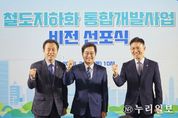 (누리일보) 경기도의회 건설교통위원회 김성수 의원(더불어민주당, 안양1)은 12일 안양역에서 열린 ‘철도지하화 통합개발사업 비전선포식’에 참석하여 경부선 안양 구간의 조속한 철도지하화사업 대상지 선정을 촉구하고 강력한 추진 의지를 피력했다. 경기도가 주관한 이날 선포식에는 김성수 의원을 비롯해 김동연 경기도지사, 이계삼 안양시 부시장, 지역 주민들이 참석했다. 행사에서는 ‘지도에는 있지만 쓸 수 없었던 지상 철도 부지를 도민에게 돌려드린다’는 비전과 함께 경부선 안양 구간 철도지하화 사업의 추진 방향이 발표됐다. 김성수 의원은 축사를 통해 “경기도의회는 전국 최초로 철도지하화사업기금 조례를 제정하는 등 경기도와 안양시가 경부선 철도지하화사업을 힘 있게 추진할 수 있는 제도적 기반을 마련하고 있다”면서 “철도지하화사업 시작까지 ‘종합계획 선정’ 마지막 한 걸음을 남겨둔 만큼, 경기도의회-경기도-안양시가 하나 되어 멈춤 없이 노력해 온 결실을 맞이하자”고 목소리를 높였다. 이어 김 의원은 “수십 년간 안양을 동서로 단절시켰던 경부선 철도는 그동안 지역 발전의 큰 걸림돌이었다”고 지적하며, “이번 사업을 통해 단절된