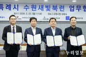 (누리일보) 수원특례시가 어린이·청소년 독서 문화를 확산하는 ‘수원새빛북런’ 사업을 추진한다. 수원시와 ㈜아이스크림에듀, (사)씨드(Seed)숲, 수원시서점협동조합은 23일 시청 상황실에서 ‘수원새빛북런(Book Learn) 업무협약’을 체결하고, 협력을 약속했다. 수원새빛북런은 민간의 우수한 독서교육 콘텐츠로 미래를 이끌어 갈 독서 인재를 키우는 사회공헌사업이다. 4~8월에 독서챌린지 앱·홈페이지에서 독서룰 인증하고, 독후감을 작성하는 ‘수원새빛북런 챌린지’를 진행한다. 9~10월에는 코스튬 퍼레이드, 성곽 걷기, 체험존 운영 등으로 진행되는 ‘수원새빛북런 데이’를 연다. 협약에 따라 수원시는 독서문화 확산을 위한 행정 지원을 하고, (사)씨드숲은 수원새빛북런 사업 운영을 총괄한다. ㈜아이스크림에듀는 독서 인증 챌린지 콘텐츠를 제공하고, 수원시서점협동조합은 지역 서점을 기반으로 한 독서문화프로그램·캠페인 등 독서 행사 개최에 협력한다. 이날 협약식에는 이재준 수원시장과 ㈜아이스크림에듀 대표, (사)씨드숲 사무총장, 수원시서점협동조합 이사장 등이 참석했다. 이재준 수원시장은