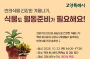 (누리일보) 고양특례시는 반려식물의 건강한 겨울나기를 위한 맞춤 해법을 제공하는 ‘그린케어, 겨울 대비 반려식물 돌보기 행사’를 오는 10월 23일 오후 2시부터 5시 30분까지 백마 화사랑에서 개최한다고 밝혔다. 먼저 백마 화사랑 야외 공간에서는 고양시식물병원 전문가가 상주해 시민이 직접 가져온 반려식물에 대해 1:1 현장 진단을 제공하고, 병해충, 과습 등 식물의 상태에 따라 분갈이, 영양제 처방 및 맞춤형 월동 관리법을 안내한다. 별도 신청 없이 당일 현장 접수로 참여 가능하다. 실내에서는 ‘반려식물 동절기 핵심 관리법’을 주제로 체험형 특강이 진행된다. 겨울철 생육 관리 요령, 휴면기 대비 가지치기 및 분갈이 실습 등 내년 봄의 성장을 위한 전문적인 지식을 습득할 수 있다. 특강은 백마 화사랑 누리집에서 선착순 12명까지 신청할 수 있다. 시 관계자는 "겨울은 식물이 가장 취약해지는 시기인 만큼, 이번 행사를 통해 전문가의 과학적인 진단과 맞춤형 솔루션으로 반려식물과 더욱 건강하고 풍요롭게 겨울을 나시길 바란다”고 전했다. 행사에 대한 자세한 내용과 특강 신청은 백마 화사랑 누리집을 통해 확