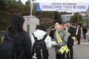 (누리일보) 전라남도교육청이 2026학년도 대학수학능력시험일인 13일 시험장을 찾아 수험생을 응원했다. 김대중 교육감을 비롯한 도교육청 간부들은 이날 오전 75지구 제7시험장인 순천복성고등학교 교문 앞에서 시험을 치르기 위해 들어서는 수험생들을 반갑게 맞이하며 최선을 다해줄 것을 당부했다. 순천복성고 현장에는 김 교육감과 박철완 중등교육과장, 허동균 순천교육지원청교육장, 강종수 순천복성고 교장 등이 “파이팅”을 외치며 수능 대박을 기원했다. 이날 오전 황성환 부교육감도 교육청 간부들과 함께 문태고등학교를 방문해 수험생들을 격려했다. 김대중 교육감은 “모든 수험생 여러분, 정말 수고 많았다. 오늘은 여러분의 날이다”며 “결과에 대한 부담은 내려놓고, 그동안의 노력이 만들어준 자신감을 믿으며 차분히, 끝까지 최선을 다하길 바란다”고 말했다. 한편, 이날 목포·여수·순천·나주·광양·담양·해남 등 7개 시험지구, 총 46개 시험장에서는 1만 4,952명의 수험생이 2026학년도 대입 수능시험을 치른다.