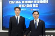 (누리일보) 광주광역시와 전라남도는 권한대행을 중심으로 핵심 국장급 실무진으로 이뤄진 광주·전남 정책협의체를 지난 24일 발족하고, 제1차 회의를 가졌다. 정책협의체는 양 시도 권한대행과 기획조정실장, 자치행정국장, 행정통합실무준비단장 등 총 8명으로 구성된 실무 조정·결정 기구로, 행정통합의 기본 방향 설정, 고위급 소통, 분야별 통합현안의 신속한 의사결정이 필요하다는 공감대 아래 설치키로 사전 합의, 출범하게 됐다. 양 시도는 정책협의체를 통해 부서간 이견 조율이 필요한 통합과제에 대한 공식 협의기구 역할을 수행하게 된다. 또, 실질적인 행정통합 추진을 위한 정부 재정 지원책 마련과 관련 특별법 등 제도 개선 사안에도 공동 대처하기로 뜻을 모았다. 이날 발족과 동시에 광주전남공동혁신도시(나주) 복합혁신센터에서 열린 제1차 회의에서는 협의체 운영안, 주요 통합과제 및 공동 추진안을 논의했다. 정책협의체 운영은 정례 회의와 수시 회의를 병행하되 긴급한 현안에 대해서는 시·공간의 제약 없이 격식 없는 논의를 거쳐 신속한 의사결정을 지원할 방침이다. 양 시도는 특히 조직·인사·재정·법제·전