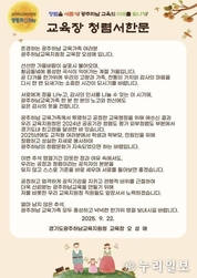 (누리일보) 경기도광주하남교육지원청은 9월 22일 추석 명절을 맞아 관내 학교와 기관에 공정하고 신뢰받는 교육행정 실현을 위한 청렴서한문을 배포했다. 이번 서한문은 ‘청렴파인DAY 프로젝트’의 일환으로 추진된 것으로, 추석 명절을 맞아 교직원들에게 감사의 뜻을 전하고 관행적 비위 근절과 공직기강 확립을 당부하는 내용을 담았다. 이를 통해 청렴한 광주하남교육을 실현하겠다는 기관의 의지를 강조했다. 오성애 교육장은“각자의 자리에서 교육과 행정을 위해 헌신하는 교직원 여러분께 깊이 감사드린다”며 “명절 기간에도 공정과 청렴이라는 공직자의 본분을 잊지 않고, 공직기강을 확립해 청렴하고 신뢰받는 광주하남교육을 만들어가는 데 교육지원청이 앞장서겠다”고 말했다. 한편, 광주하남교육지원청은 이번 청렴서한문 배포와 함께 청렴주의보 발령, 청렴 조직문화 진단 등 다양한 청렴문화 활동을 지속적으로 추진해 청렴문화 정착에 힘쓸 계획이다.