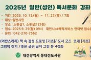 (누리일보) 동대전도서관은 오는 10월부터 11월까지 성인을 대상으로 독서문화 프로그램을 운영한다고 23일 밝혔다. 이번 프로그램은 독서를 기반으로 한 문화예술 활동을 통해 시민들의 인문학적 소양과 감수성을 높이고, 일상 속에서 다양한 독서 문화를 체험할 수 있도록 기획됐다. 운영 과정은 ▲책 속 감성 드로잉(어반스케치 기초) ▲도서 굿즈 뜨개(기초) ▲그림책 짓기 ▲좋은 글귀 글자 그림 등 4개 강좌로 구성된다. 강의 종료 후에는 수강생 주도의 자율 동아리 결성도 지원할 예정이다. 프로그램은 ▲10월 13일부터 매주 월요일 진행되는 ‘책 속 감성 드로잉’ ▲10월 14일부터 매주 화요일 열리는 ‘도서 굿즈 뜨개’ ▲10월 15일부터 매주 수요일 진행되는 ‘그림책 짓기’ ▲10월 16일부터 매주 목요일 열리는 ‘좋은 글귀 글자 그림’ 등으로 나뉘며, 강좌별 정원은 10~20명이다. 수강 신청은 오는 9월 29일 오전 9시부터 대전시 OK예약서비스를 통해 접수할 수 있으며, 모든 강좌는 무료로 운영된다. 다만 교재비와 재료비는 별도 부담이다. 동대전도서관 관계자는 “시민 누구