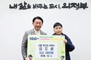 (누리일보) 의정부시는 12월 2일 서울한신초등학교 6학년 김도윤 군이 ‘100일간 사랑릴레이 배턴 잇기’에 동참하며 성금 100만 원을 기부했다고 밝혔다. 이번 성금은 그동안 아껴 모은 용돈과 바이올린 대회 상금을 더해 마련한 것이다. 김도윤 군은 꾸준히 봉사활동을 이어온 할머니를 보며 나눔의 가치를 배우게 됐고, 도움이 필요한 이웃에게 의미 있게 쓰고 싶다는 마음으로 기부를 결심했다. 김도윤 군은 “바이올린 대회 상금과 용돈이 누군가에게 따뜻한 희망이 될 수 있다고 생각하니 기뻤다”며 “저도 할머니처럼 어려운 이웃을 돕는 일에 참여하고 싶었다”고 전했다. 김동근 시장은 “어린 학생의 순수한 마음과 나눔 실천이 큰 감동을 준다”며 “가족의 좋은 영향으로 이웃사랑을 실천한 점이 귀감이 된다”고 말했다. 한편 ‘100일간 사랑릴레이 배턴 잇기’는 연말연시 지역 내 취약계층을 돕기 위해 시민‧단체‧기업이 함께 참여하는 나눔 운동으로, 다양한 주체의 참여 속에 지역사회에 온정을 전하고 있다.