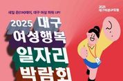 (누리일보) 대구광역시는 여성들의 다양한 취·창업 기회를 지원하고, 경력단절 여성의 사회 복귀를 돕기 위해 ‘2025 대구 여성행복 일자리박람회’를 오는 9월 26일부터 27일까지 양일간 엑스코 동관(전시 5홀)에서 개최한다. 이번 박람회는 ‘여성UP포럼’과 연계해 진행된다. 대구시가 주최하고, 여성취업지원 전문기관인 여성새로일하기센터 대구 지역 5곳(남부·달서·대구·수성·신달서)이 공동 참여하는 이번 박람회에는 출산·육아 등으로 경력이 단절돼 재취업을 꿈꾸는 여성은 물론, 청년 및 중·장년층 여성들에게도 구인 기업과의 현장채용 및 간접채용의 기회를 제공한다. 박람회는 ▲새일홍보관 ▲취업지원관 ▲채용지원관 ▲협력지원관 ▲경력단절예방관 ▲부대행사관 등 6개 영역으로 운영된다. ‘새일홍보관’에서는 새일센터 취업지원 사업과 새일센터 직업교육훈련 과정을 안내하며, ‘취업지원관’에서는 각 센터별 취업 상담사가 박람회에 방문한 구직 여성들에게 채용 정보를 제공한다. ‘채용지원관’에서는 15개 기업이 직접 참여해, 인사 담당자와 구직 여성 간 1:1 현장면접을 통해 118명을 채용할 계획이다.